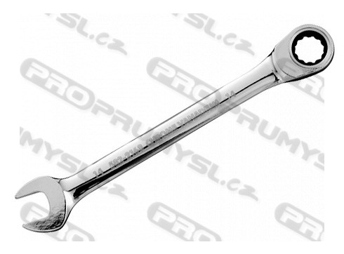 Metrický očkoplochý klíč vykloněný o 15°, vykovaný z chrom-vanadové oceli.